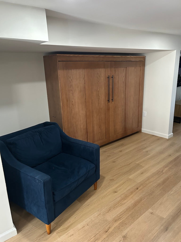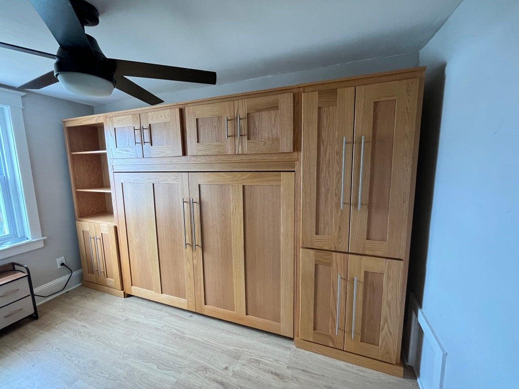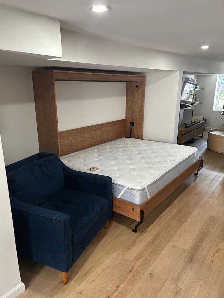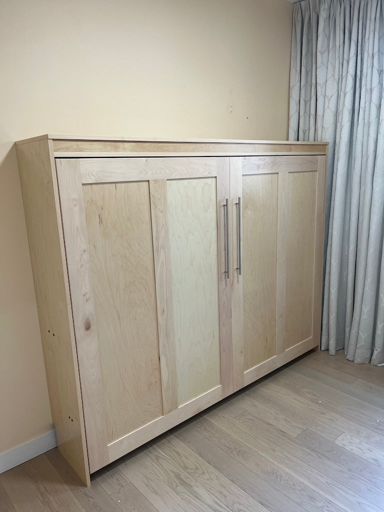 The vertical lines of the Manhattan face design and its 21” bar pulls bring out the contemporary flair of this real wood murphy bed. Guests with an eye for modern style are sure to appreciate its sleek design.